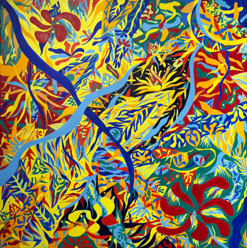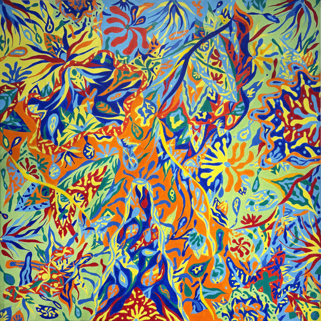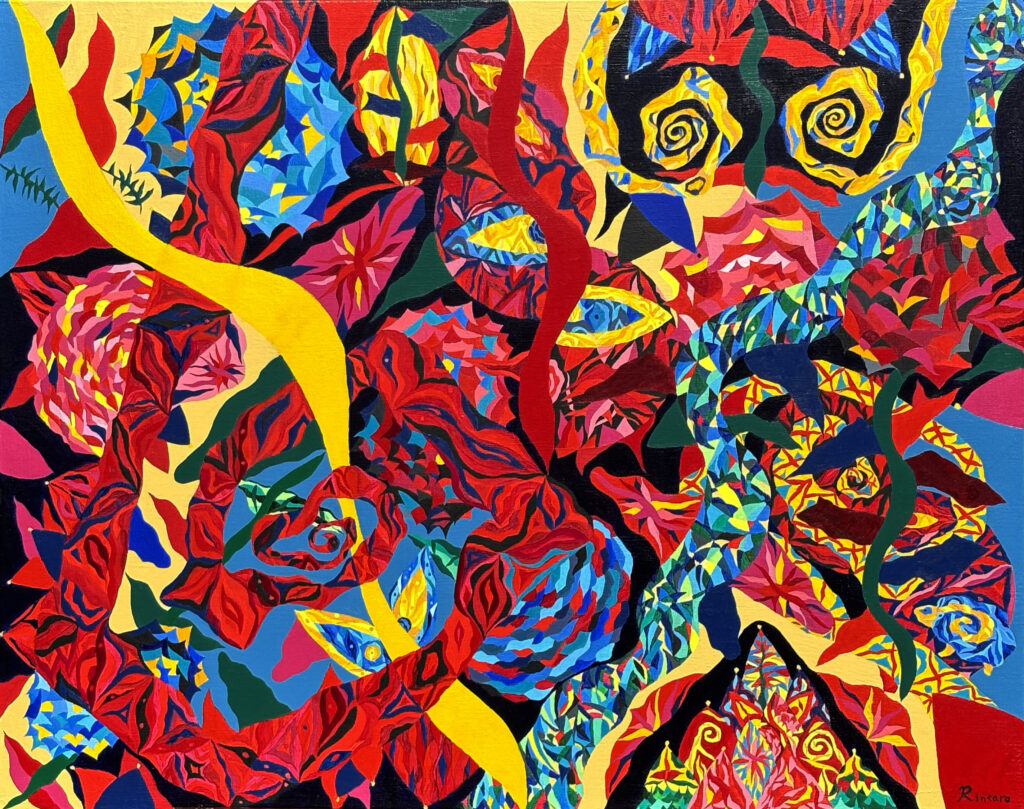 正方形のキャンバスで、視覚的なインパクトが強い形です。
