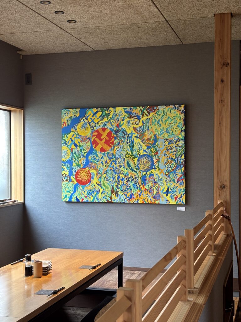 作品は店内に展示されていますので、お食事の際にぜひご覧ください。
